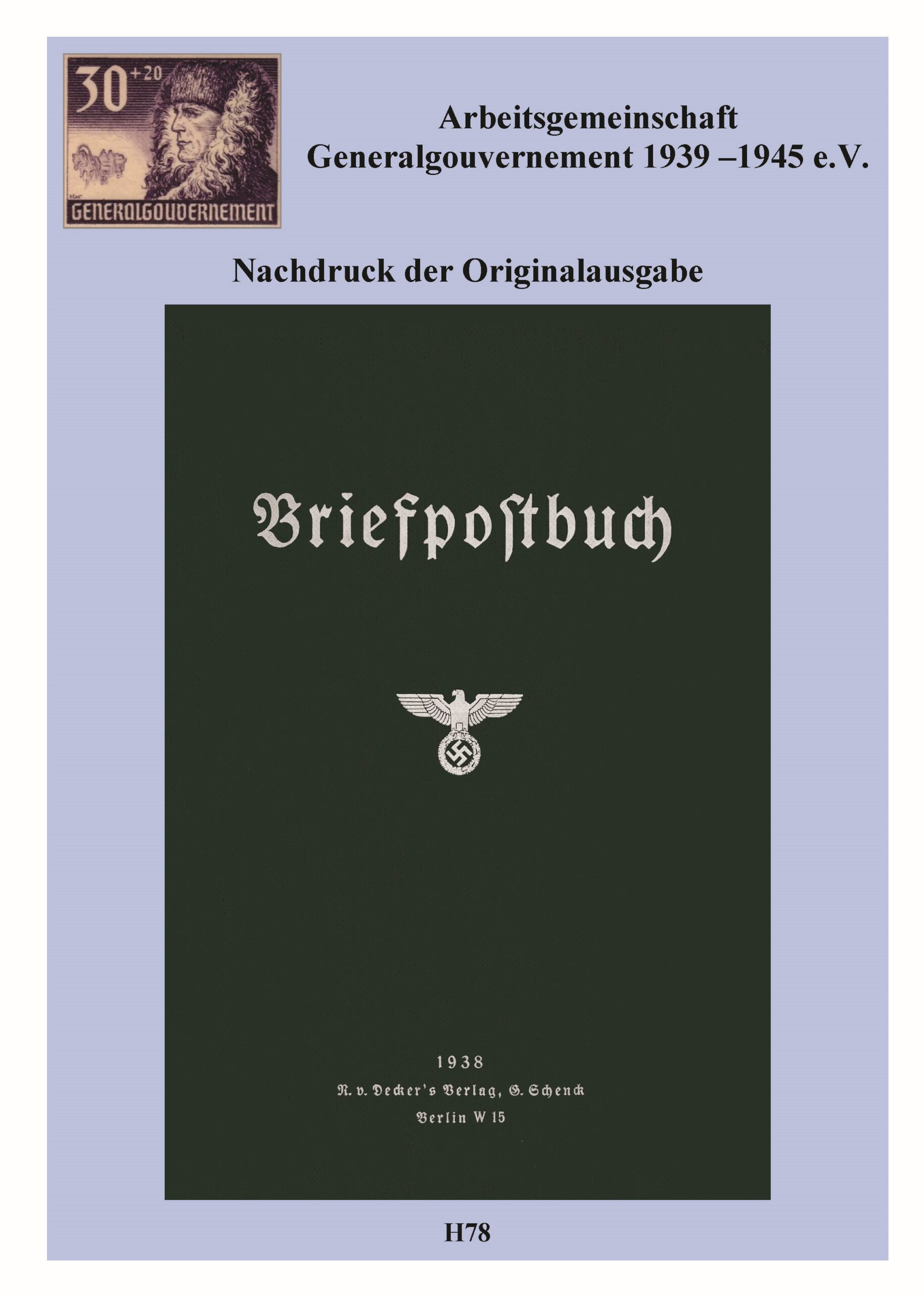 | H078 Briefpostbuch 1938 Nachdruck der Originalausgabe, 1938, 290 Seiten, 29,50 €, 660g Gewicht, sw.