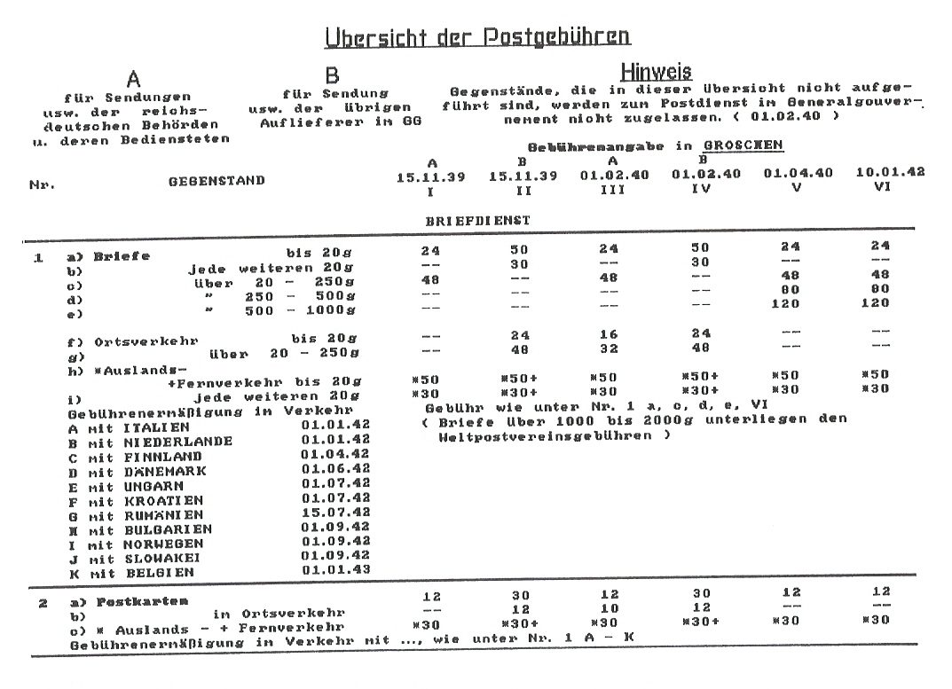 Verzeichnis sämtlicher Postämter und Postamtsstellen des GG |